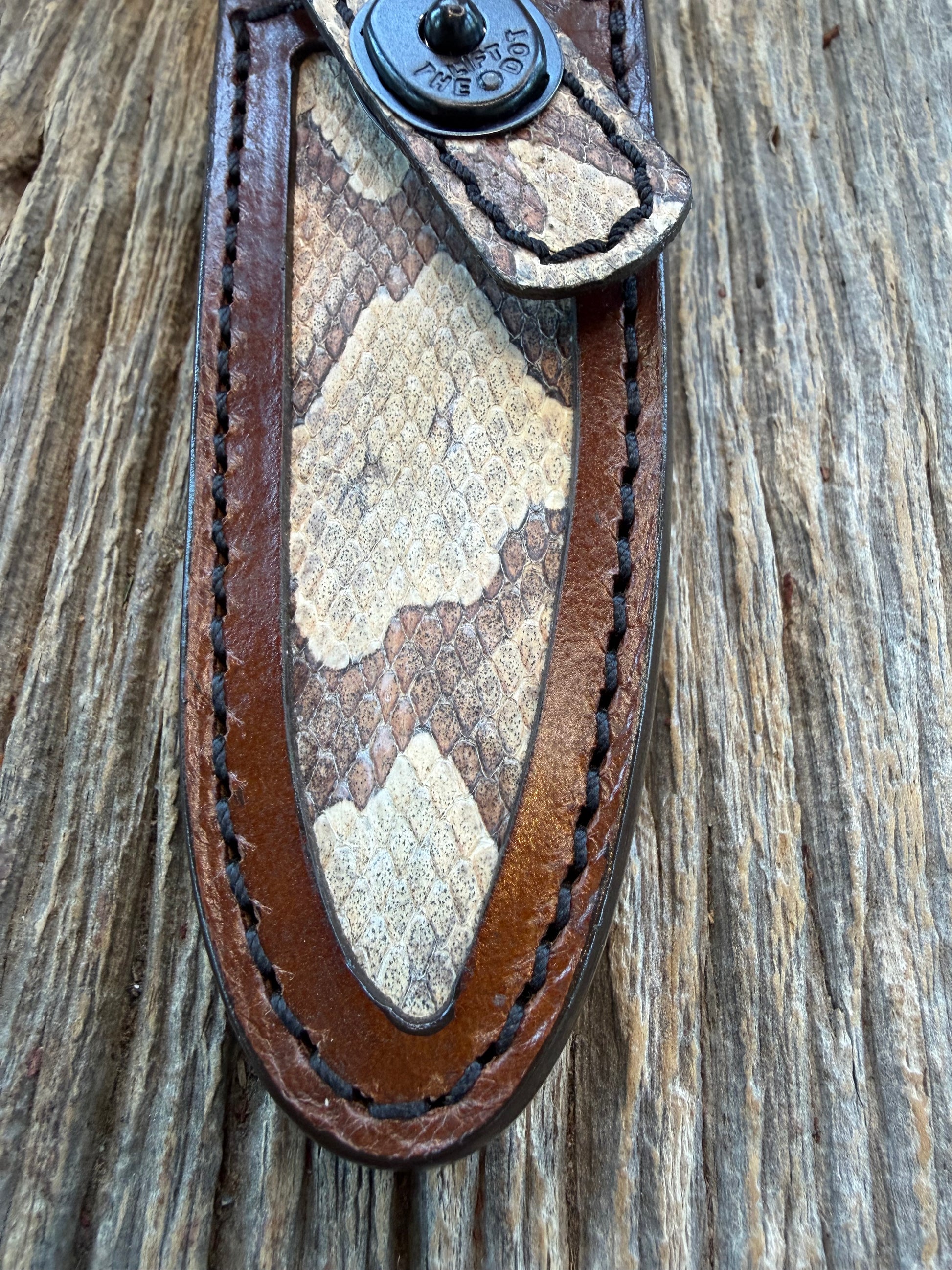 Randall Model 8-4 Sheath in Exotic Southern Copperhead from Treeman Sheaths. Black Canteen Snap. Stunning colors and pattern.
