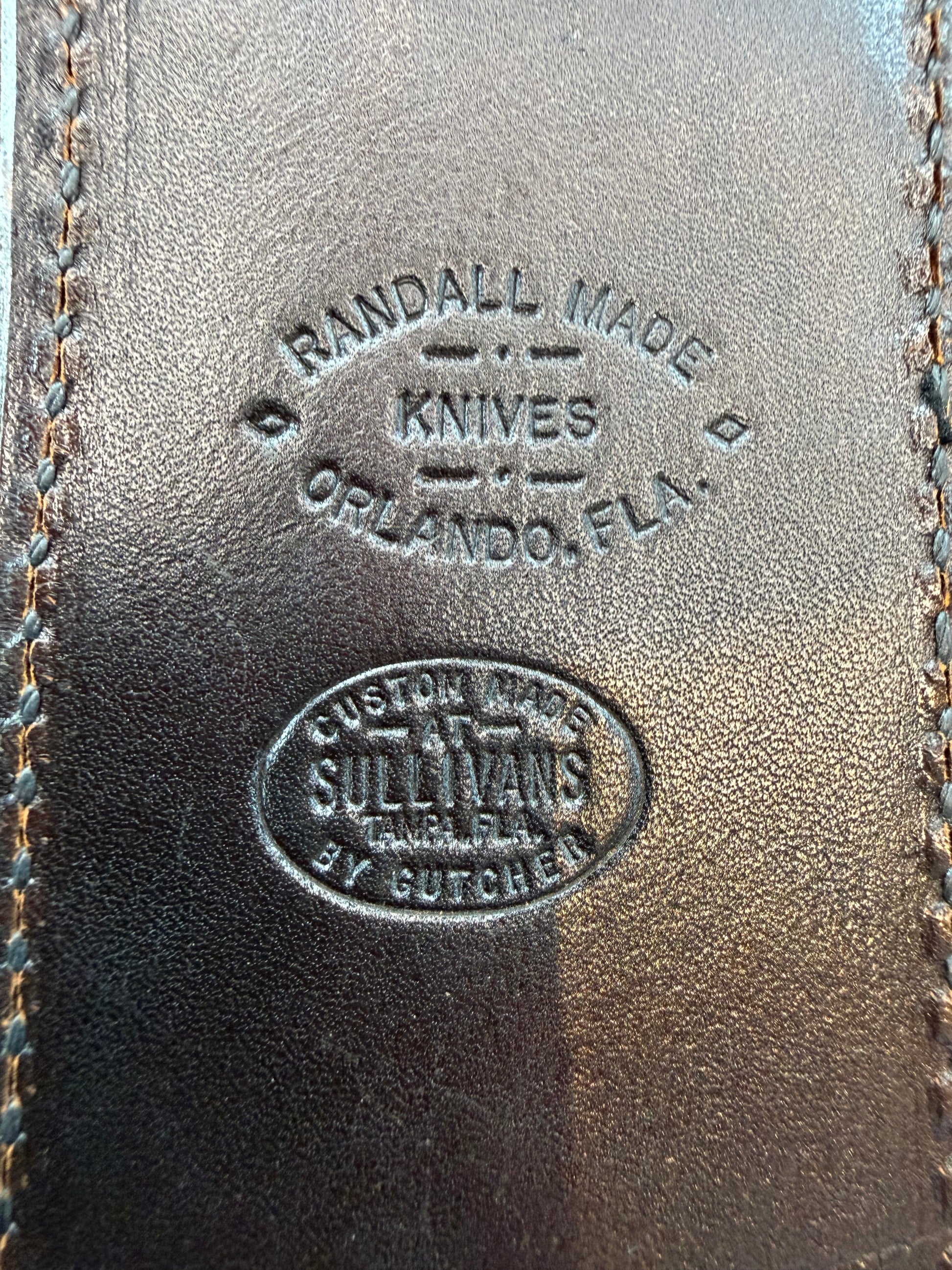 Some great exotic skin sheaths for 2025. Here is rare Crocodile tail sheath with great colors and smooth perfect scales. All the proper stamping on the back, Randall snap on the front and great Randall logo on the back.