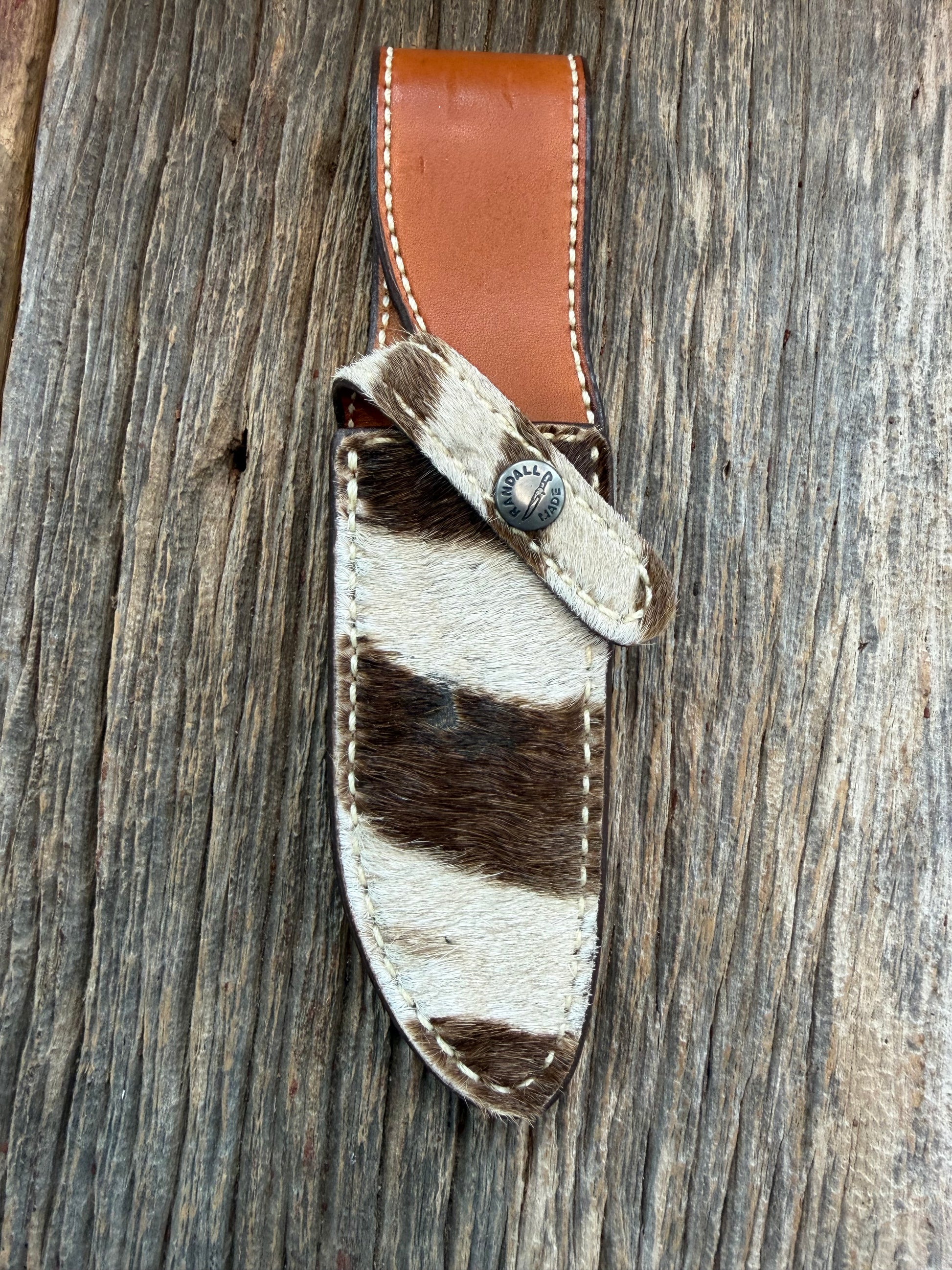 Some great exotic skin sheaths for 2025. Here is rare Zebra sheath with great colors and smooth perfect scales. All the proper stamping on the back, Randall snap on the front and great Randall logo on the back.