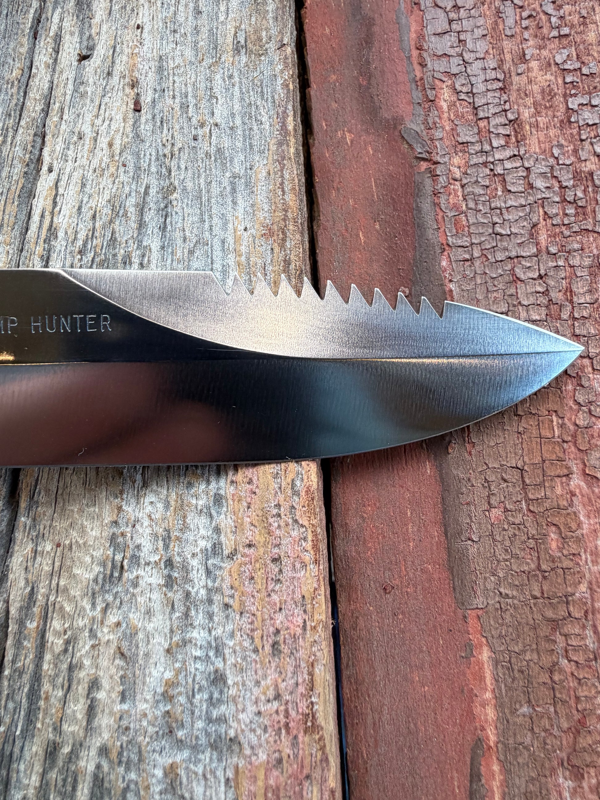 Randall Model Combat Companion in Warthers Resin. Comes with the Randall Leather sheath. There is currently a 5-6 year wait on Randall’s. Thus CC was sent back to Randall and had Bearcamp Hunter etched into the blade. This is a stunning knife !!