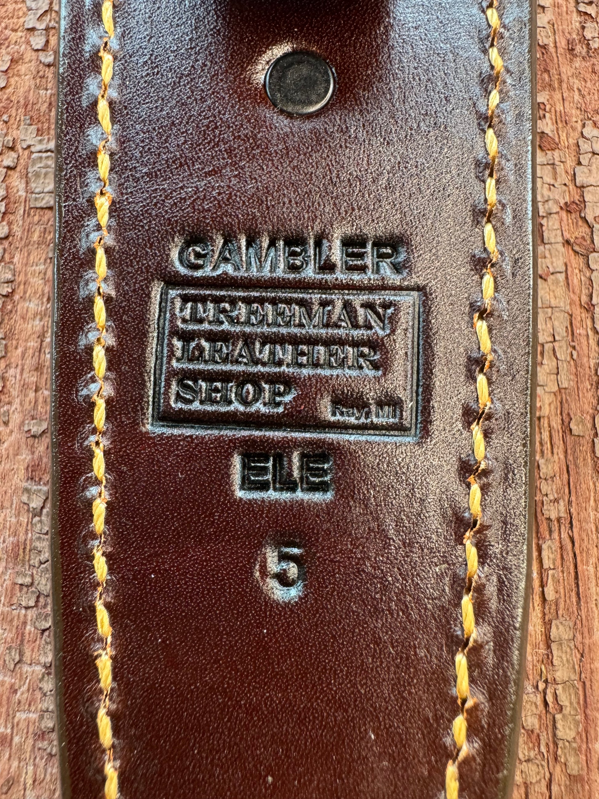 My first sheaths for 2025 are looking great. Great skin colors and patterns in many different Randall Models. The latest from Treeman Knives out of Troy Michigan. Sheath maker Rocco with brass stamping on the back and a new Treeman logo giving it a clean organized look.