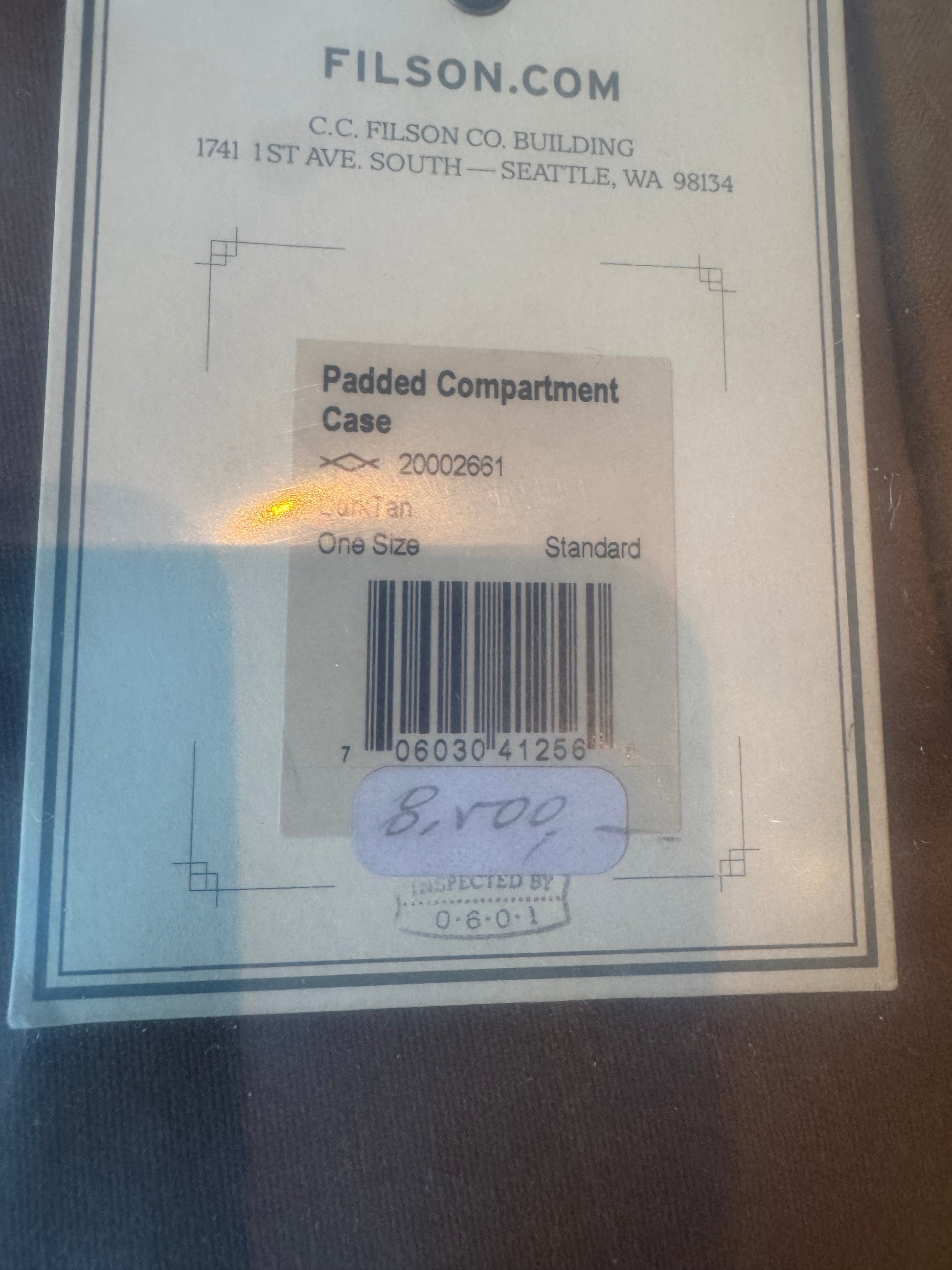 VINTAGE NEW OLD STOCK FILSON Compartment Case. Camera lenses or fishing reels. FROM Oc October 2016. Old SCHOOL USA TAG.
