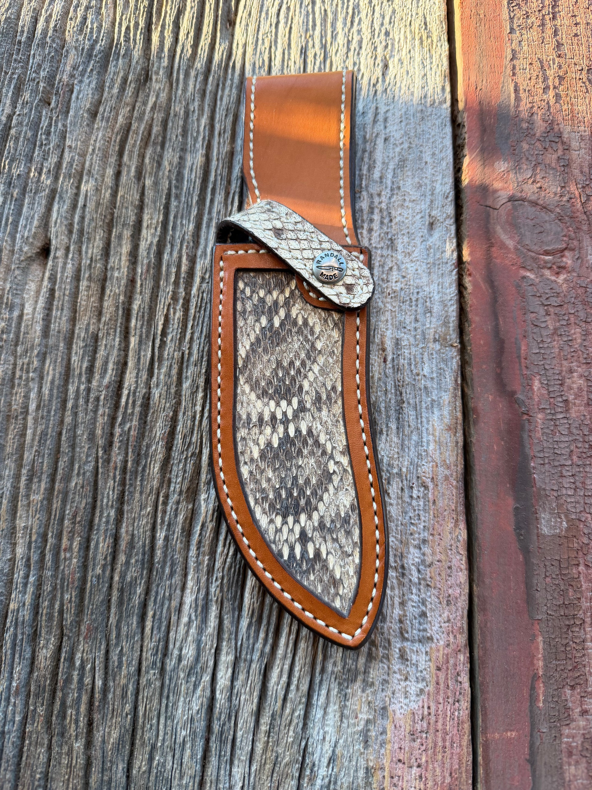 Very nice Gutcher Rattlesnake sheath for a Randall Model Bowles Special. This is for the newer version Bowles Special and has the Randall snap with a straight hilt.