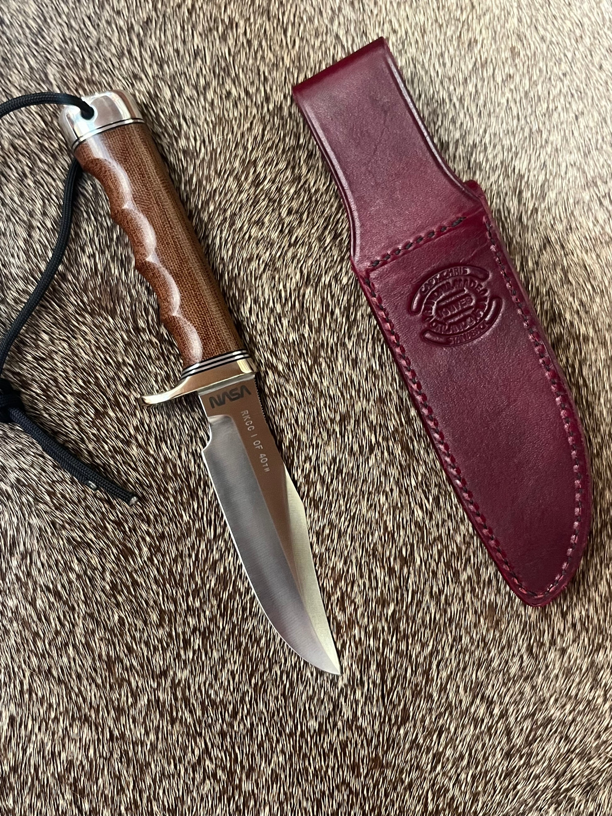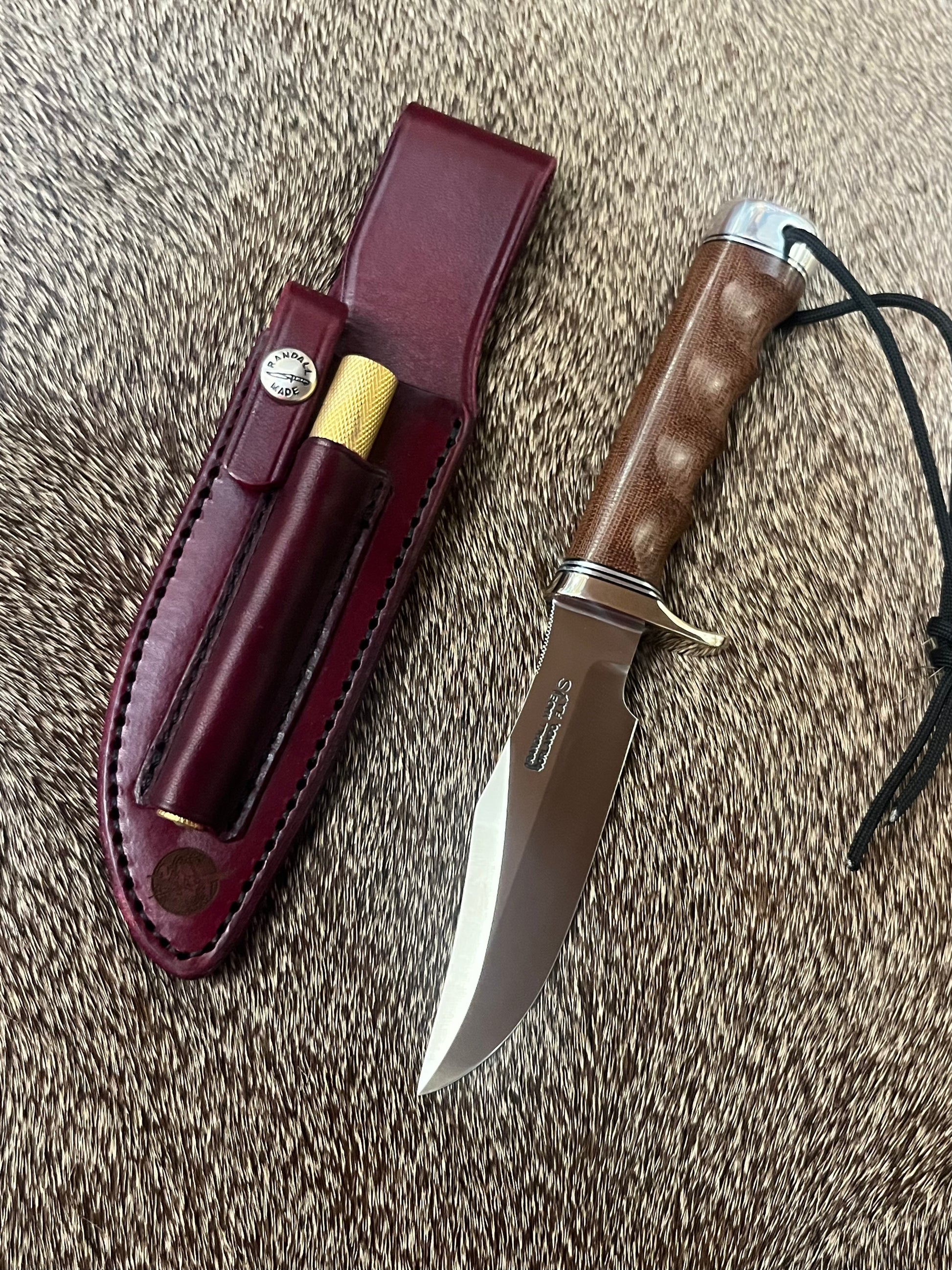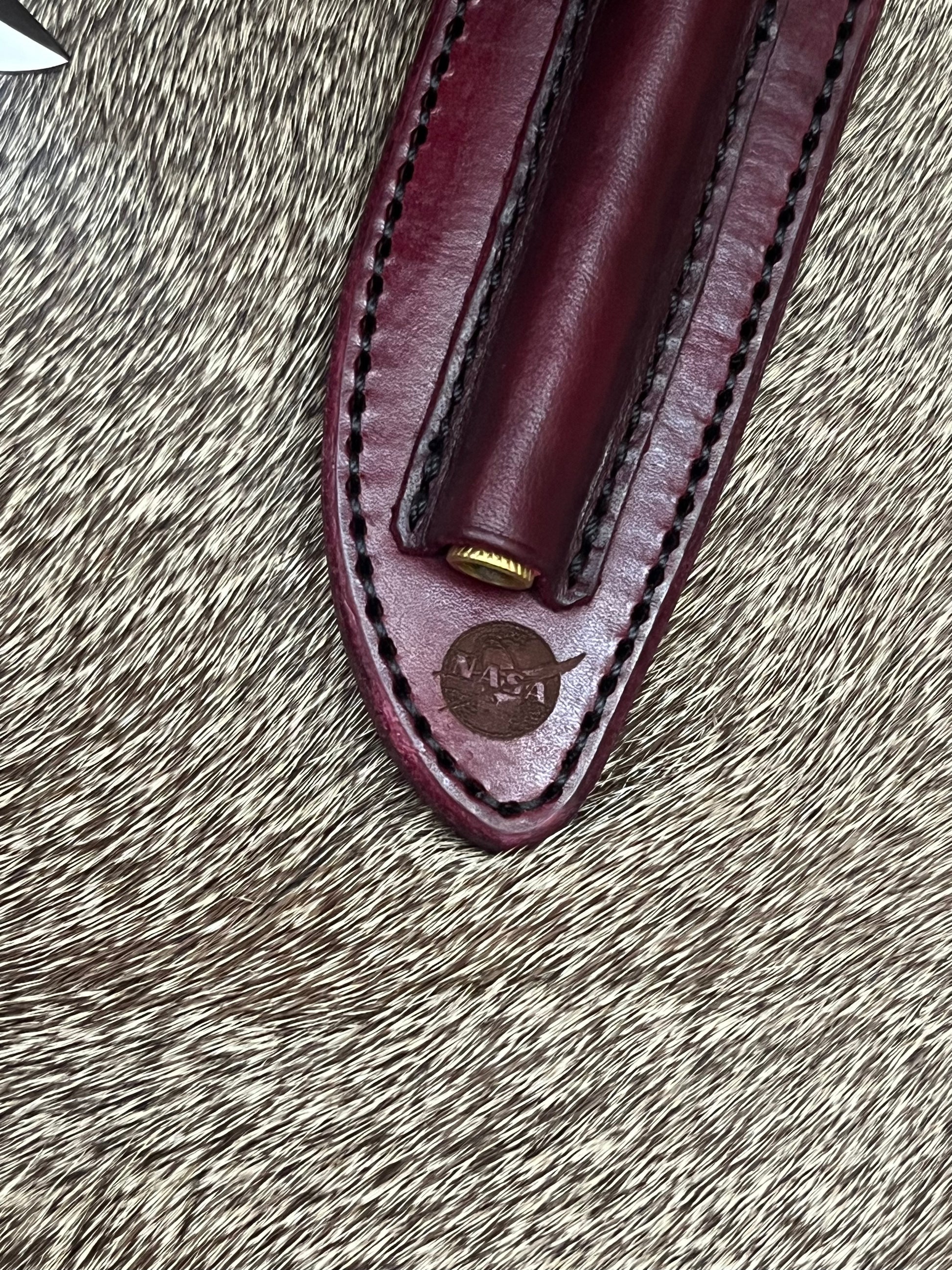 Ox Blood Custom Leather Sheath from Sullivan’s Leather Shop with a Brass E-Z Lap Sharpener